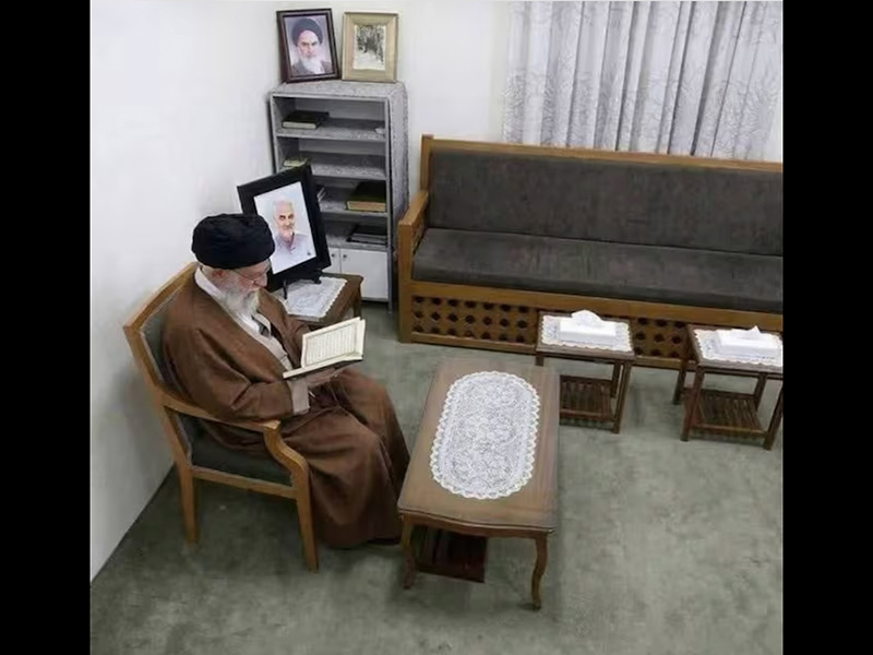 De acuerdo con los reportes, la fotografía proviene de una cámara de vigilancia instalada en su oficina. En la imagen, Jameneí aparece sentado mientras lee el Corán.