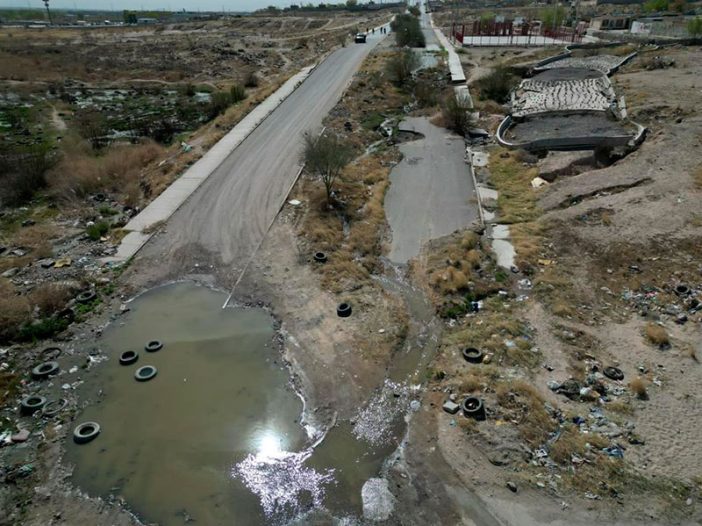 Junto a esta olvidada vialidad, del lado contrario al parque, se encuentra un enorme terreno baldío, de aproximadamente kilómetro y medio. El agua que corre hacia abajo por Rivera del Clarín llega hasta este terreno.