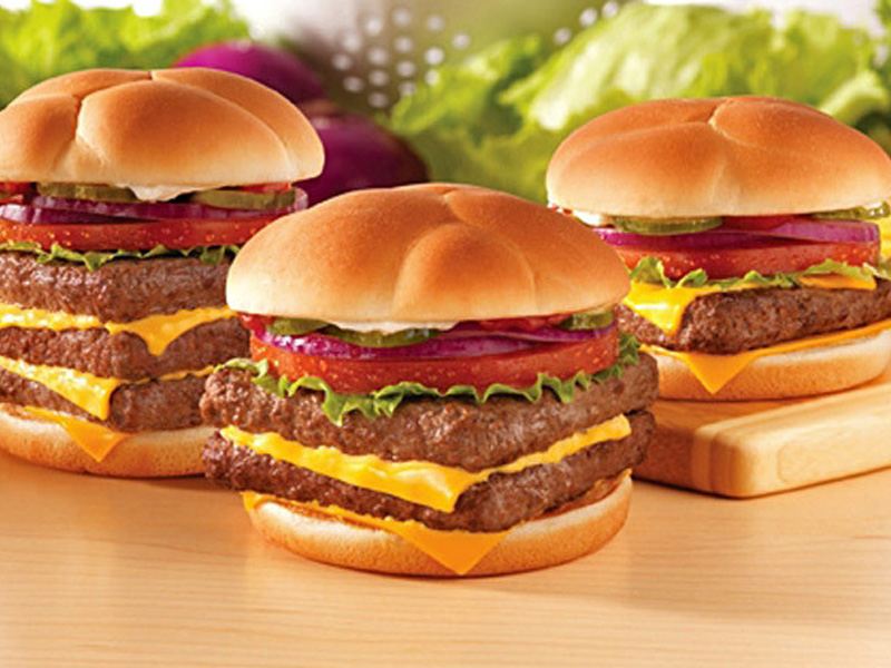 Pan Redondo, carne molida asada, rodajas de tomate, cebolla, lechuga y pepinillos dan como resultado un platillo clásico