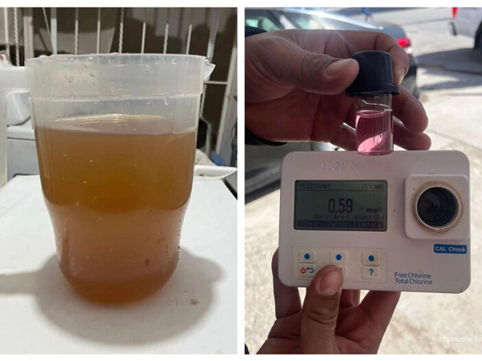 “Me dicen que el color amarillo es porque como es tubería nueva, tienen que desinfectarla con cantidades grandes de cloro, los metales que contiene la tubería al mezclarse con el cloro, hacen reacción y coloran el agua… no es apta aún para consumo humano”, expresó una de las personas afectadas.