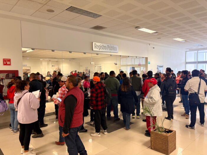 Desde las ocho de la mañana de este viernes, tanto el Registro Civil como el Registro Público de la Propiedad registran enormes filas de personas que salieron beneficiados con viviendas del Bienestar y que requieren constancias de inexistencia de matrimonio, así como un documento que acredite que no son dueños de vivienda en el estado de Chihuahua.