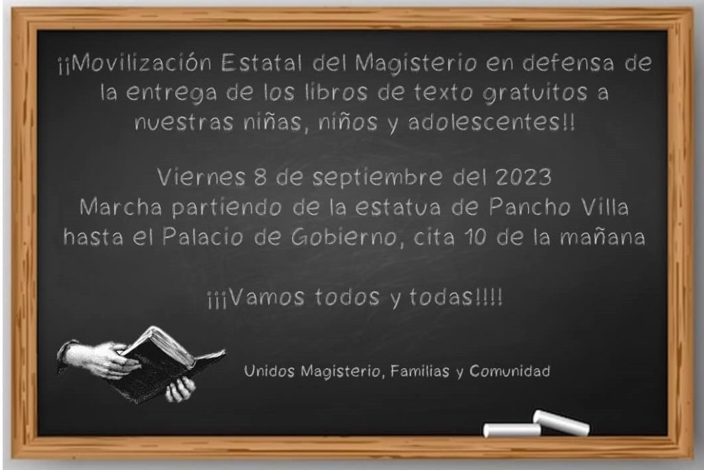 A través de redes sociales, empezó a circular una invitación en la que se convoca este próximo 08 de septiembre a las 10:00 horas en la ciudad de Chihuahua, para marchar y exigir la entrega de los libros de texto gratuitos en el estado para el ciclo escolar 2023-2024.