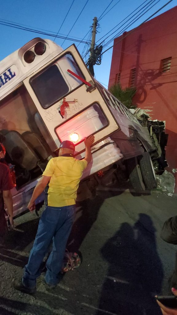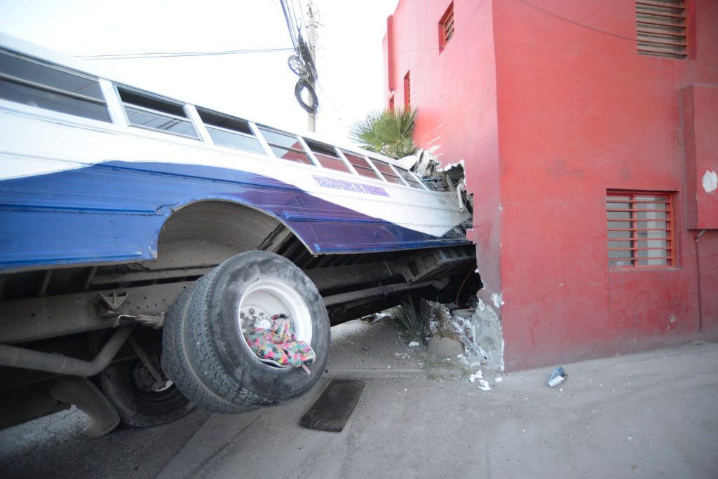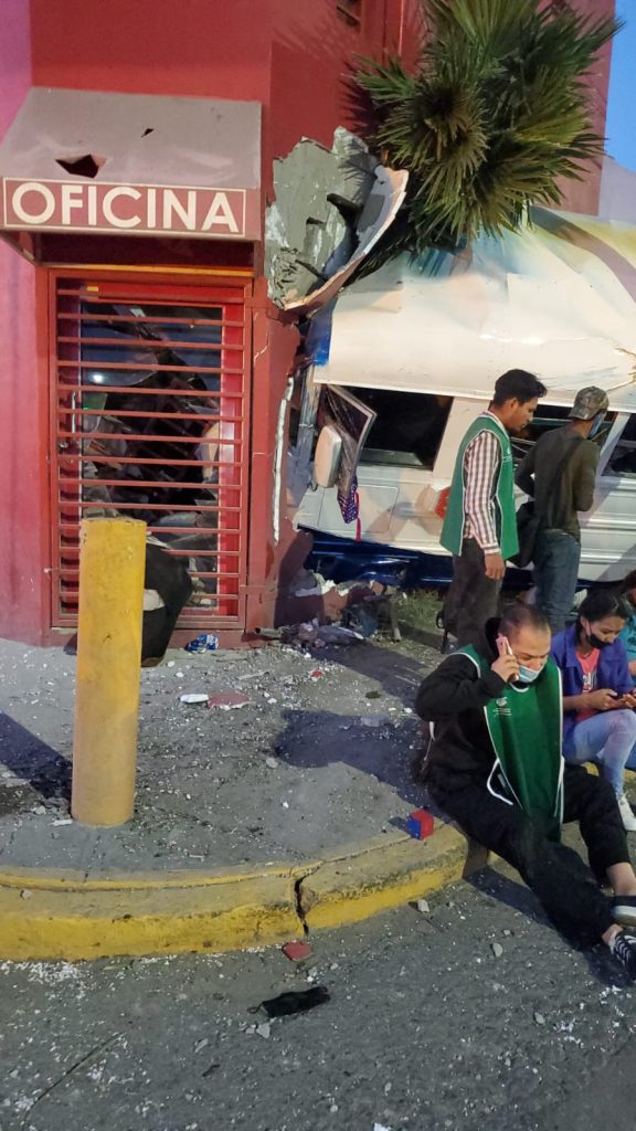 Un agente de Seguridad Vial indicó que la unidad se trasladaba de sur a norte, pero el chofer perdió el control y se impactó contra un poste y después contra la pared del establecimiento.