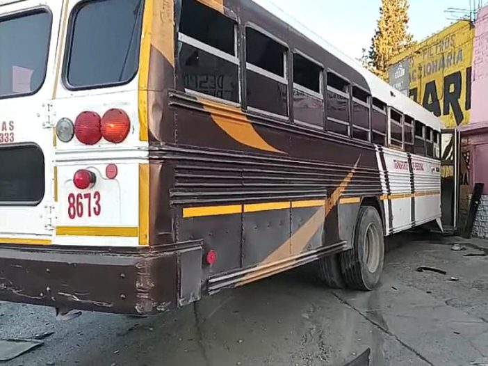 Según el chofer el camión 8673 se le ponchó la llanta delantera del lado derecho y esto hizo que se fuera hacia el negocio.