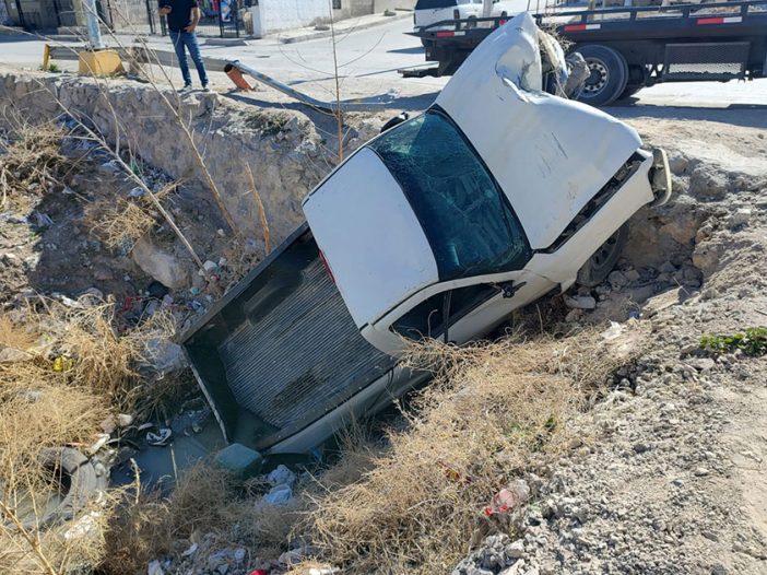 Una camioneta pickup se salió del camino y cayó al fondo de un arroyo en la colonia Díaz Ordaz.