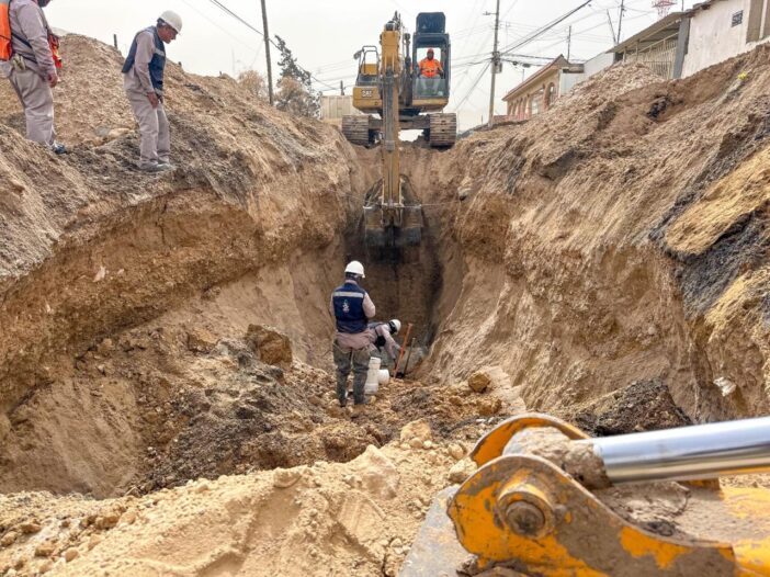 Indicó que cuadrillas del departamento de Alcantarillado realizan la reposición de aproximadamente 30 metros de tubería sanitaria de 8 pulgadas a una profundidad cercana a los 6 metros.