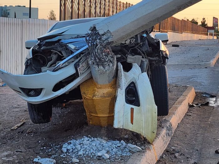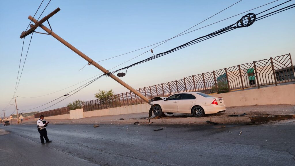 Un vehículo marca Ford Fusión 2011 color blanco, estaba impactado contra un poste de cemento de la Comisión Federal de Electricidad (CFE).