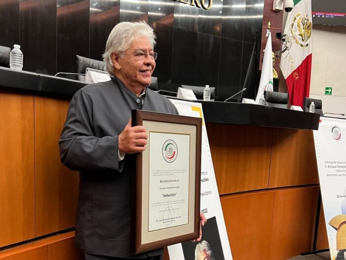El escultor Enrique Carbajal, conocido como “Sebastián”, recibió este martes el título de Chihuahuense Distinguido que otorga el Congreso del Estado, en reconocimiento a una trayectoria que ha llevado sus obras a algunas de las ciudades más importantes del mundo.
