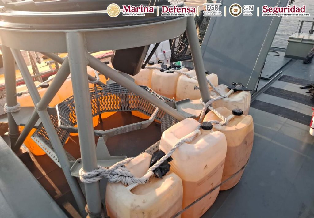 La operación marítima se realizó aproximadamente a 65 millas náuticas (120 kilómetros) al noroeste de Puerto Chiapas, tras detectar mediante el sistema de vigilancia marítima una embarcación con tres motores fuera de borda que realizaba maniobras sospechosas, ajenas a la navegación civil.