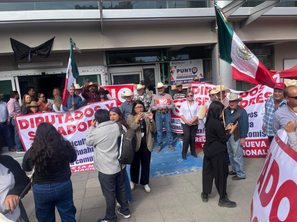 El grupo de inconformes contra el nuevo marco legal se manifestó este martes 18 de noviembre en la Plaza de Armas, justo frente a la Torre Legislativa del Congreso del Estado, en demanda de que los legisladores locales escuchen sus peticiones y contribuyan a frenar la reforma que, aseguran, perjudicará a miles de familias productoras.