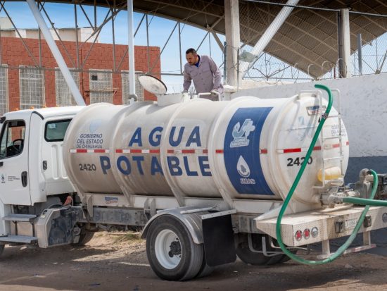 Con pipas, garantizan agua a estudiantes de Los Kilómetros