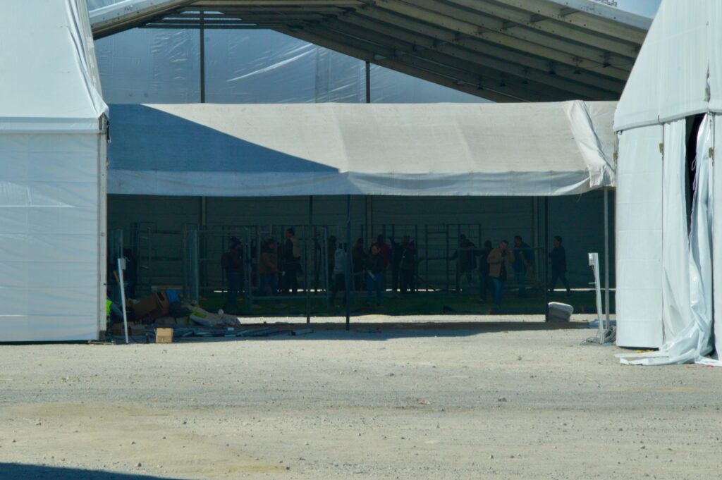De igual forma, se observó a otros armando estas estructuras, junto con otras carpas que se colocarán en medio del complejo, preparado para recibir a 2 mil 500 personas y que contará con servicios básicos como agua, sanitarios, electricidad, internet, entre otros.