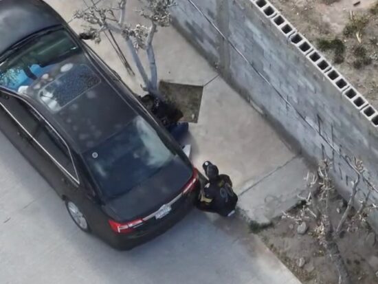 Las imágenes muestran el operativo con dron desplegado en las calles de Ciudad Juárez para ubicar y detener a dos presuntos implicados en el ataque que dejó un agente estatal sin vida y dos más lesionados