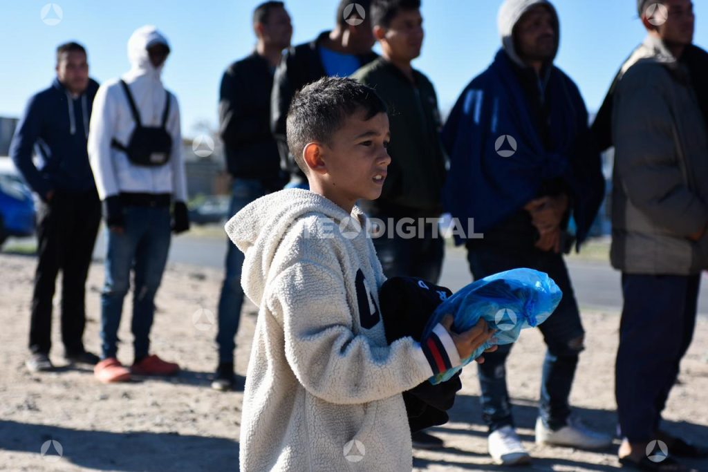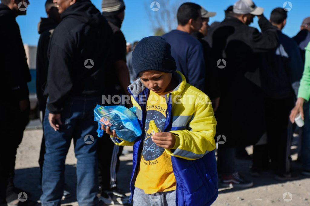 Este domingo, la comunidad migrante que acampa en el río recibió algunas donaciones y comida por parte de distintos grupos ciudadanos, de cara a un clima helado que dicen las personas en movilidad nunca haber enfrentado.