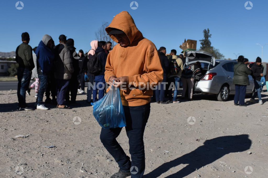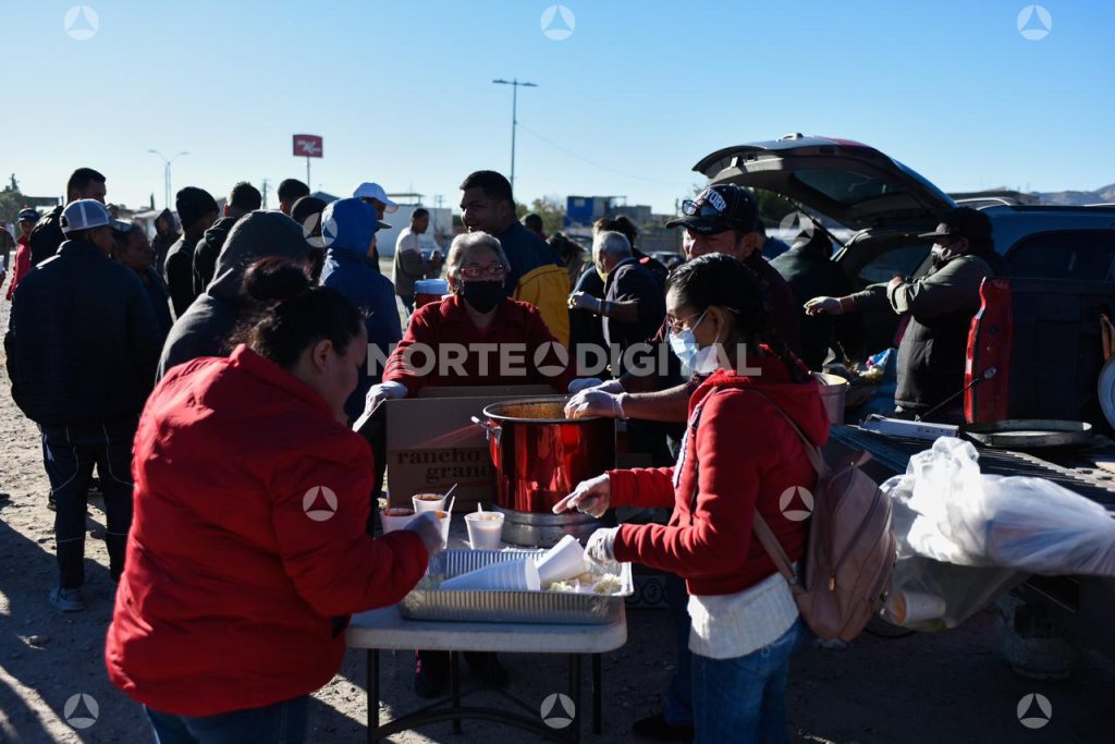 Mientras otros grupos de personas originarias de Venezuela se entregaban a la Patrulla Fronteriza en El Paso, juarenses de distintos puntos de la ciudad acudieron al lugar en camionetas cargadas de ollas con pozole, además de contenedores con avena, café, y bolsas con ropa de segunda mano.