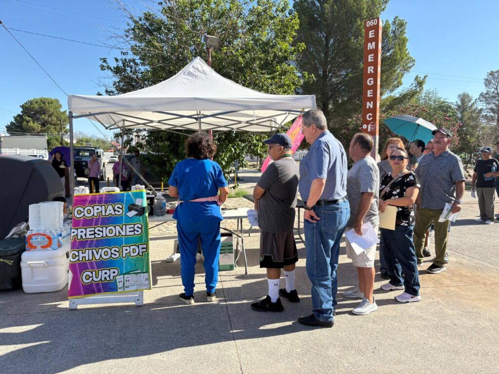 Se habilitó una zona con sillas para descansar, especialmente para quienes usan bastón o llegaron en silla de ruedas. El módulo lucía lleno, pero fluido. La espera se hacía más llevadera entre pláticas, risas, abanicos de mano y agua fresca.
