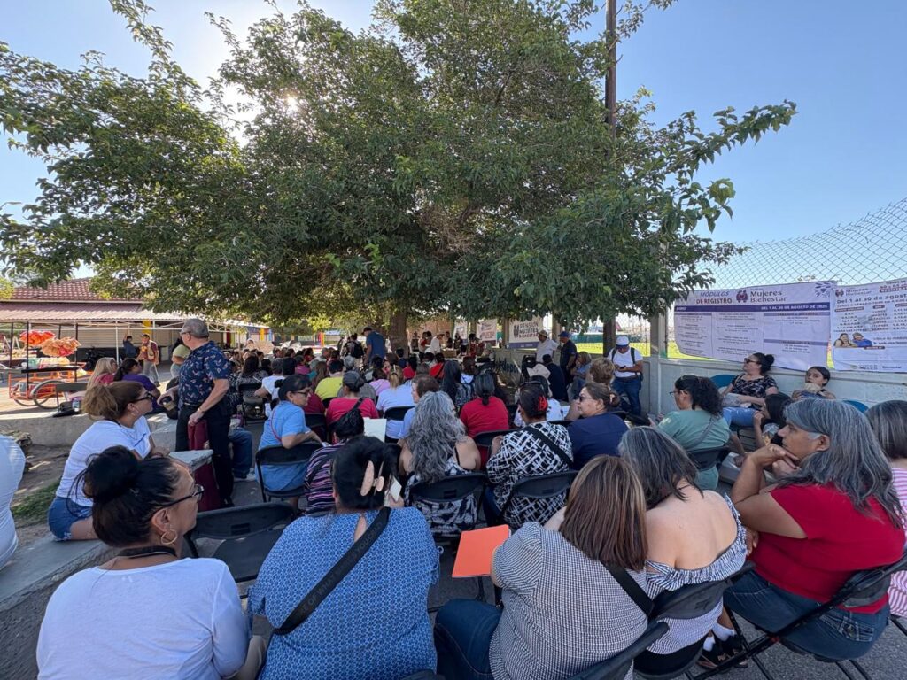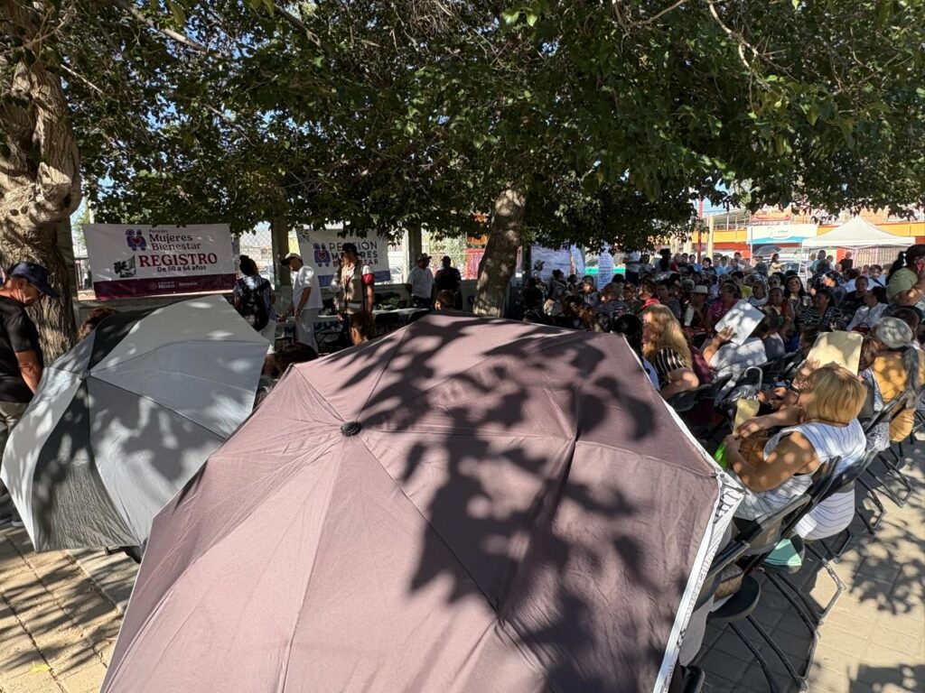 En el módulo del Parque Borunda, el sol de agosto no dio tregua, pero tampoco apagó el ánimo. Mujeres de entre 60 y 64 años, muchas acompañadas por hijas o nietos, esperaban su turno para inscribirse al nuevo programa Mujeres Bienestar, que promete una pensión de tres mil pesos bimestrales.