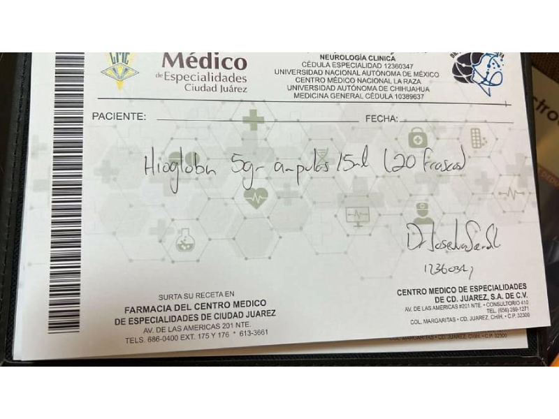 El tratamiento consta de 20 frascos de inmunoglobulina que tiene un valor de 10 mil pesos cada dosis, necesita 5 frascos por día. La familia indica que cualquier apoyo económico es de gran ayuda para ellos, el costo total del tratamiento es de 200 mil pesos.