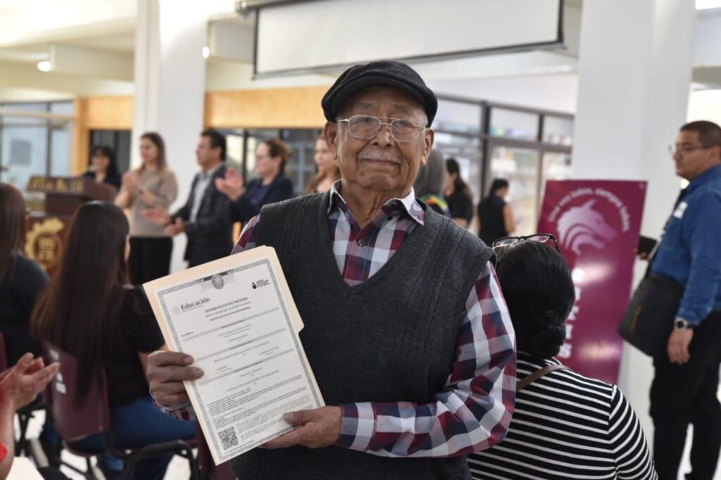 Añadió que las personas que completaron estos grados académicos lo hicieron a través del Movimiento de Alfabetización para el Bienestar, impulsado por el Ichea, con el acompañamiento de estudiantes del Cbtis 114, quienes fungieron como promotores y facilitadores del programa.