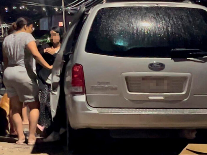 Ya entrada la noche, las jovencitas estaban resguardadas en una camioneta tipo van, color gris, también esperando a que el agua bajara para poder volver a sus casas.