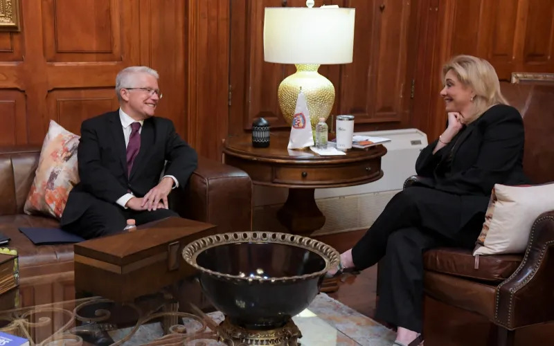 La gobernadora Maru Campos sostuvo una reunión de trabajo con el cónsul general de Estados Unidos en Ciudad Juárez, Rafael Foley, con quien abordó temas relacionados con la seguridad en la región fronteriza.