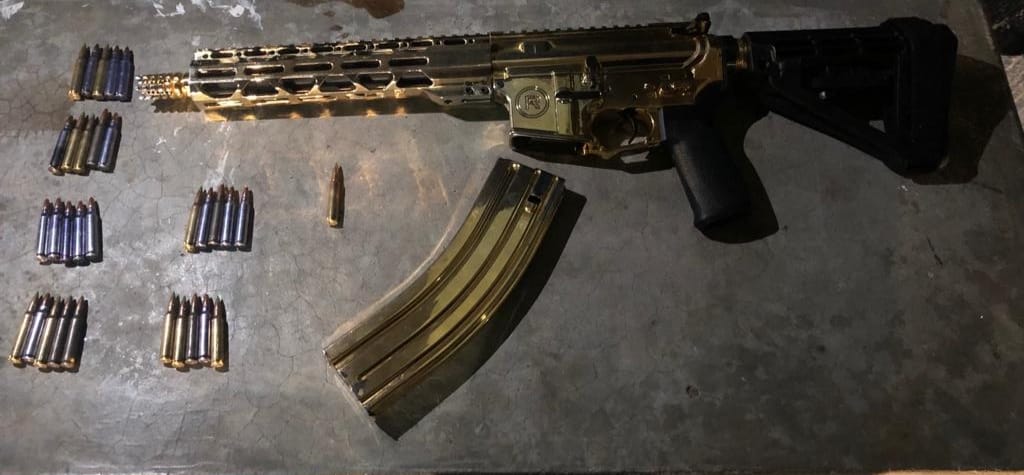 Además, fueron aseguradas 19 armas de diversos calibres, entre ellas una con chapa de oro, así como cargadores para las mismas, más de 100 municiones de varios calibres, chalecos tácticos antibalas y diverso equipo táctico.