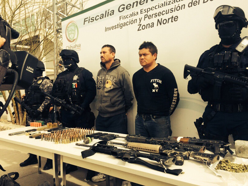 Al momento de su captura, los elementos federales le aseguraron dos rifles de asalto AK-47, una granada y una bolsa con un estimado de medio kilo de heroína
