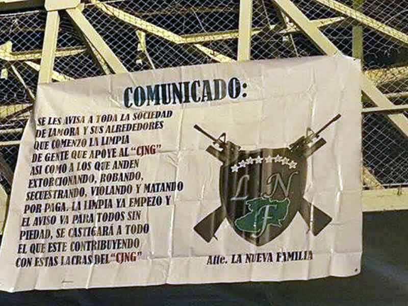 Un supuesto nuevo grupo criminal hizo su presentación hoy en Michoacán, a través de mantas colocadas en la ciudad de Zamora, una zona que disputan el Cártel Jalisco Nueva Generación y narcotraficantes locales
