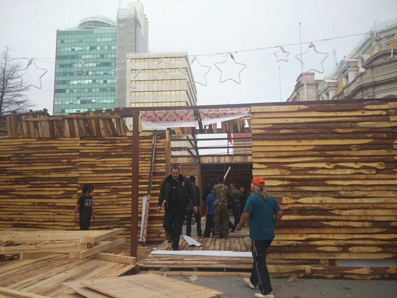 Un hombre cayó desde una altura aproximada de cuatro metros, cuando desmontaba la Casa de Santa, a un costado de la presidencia Municipal