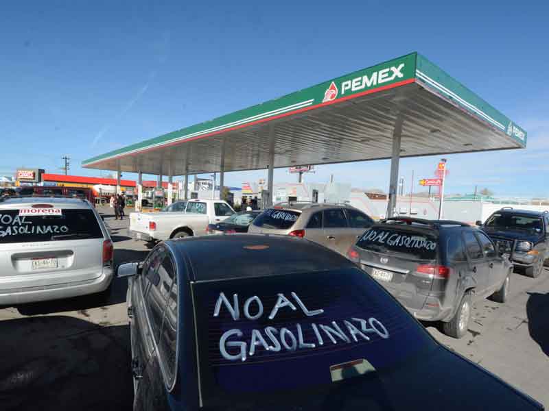 Grupos de manifestantes impiden la entrada y salida de vehículos para reparto de combustible en el Centro de Almacenamiento y Distribución de Pemex en la ciudad de Chihuahua