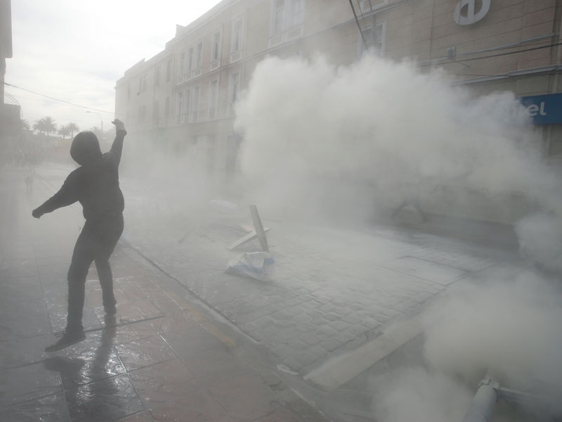 La presidenta Michelle Bachelet habló al país el jueves desde el congreso, en el vecino puerto de Valparaíso, mientras en las afueras la policía antimotines dispersó con chorros de agua y gases lacrimógenos a manifestantes
