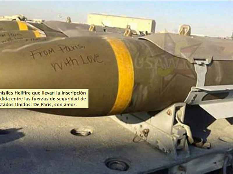 La inscripción fue hecha por los pilotos norteamericanos luego de los atentados en la capital de Francia. El armamento está preparado para ser lanzado contra el Estado Islámico en Siria