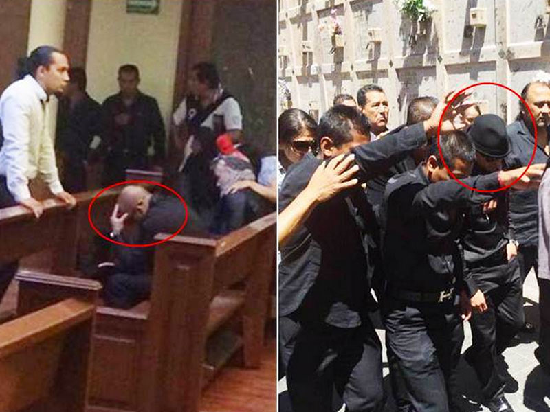 Rey Mysterio, el luchador que le propinó la patada que le provocó la muerte a Perro Aguayo, encabezó la guardia de honor frente al féretro que contien los restos del atleta de 35 años