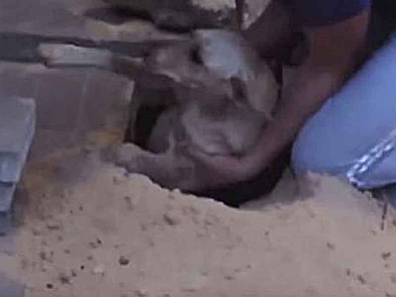 La hembra, fue enterrada bajo tierra y ladrillos en la ciudad rusa de Vorónezh; pasó días a oscuras y casi sin poder respirar, hasta que fue rescatada