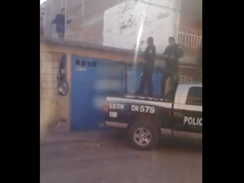 En la grabación compartida en Facebook, se ve a un hombre en el techo que amenaza con lanzar un objeto a los uniformados y a dos de ellos desenfundar sus armas.