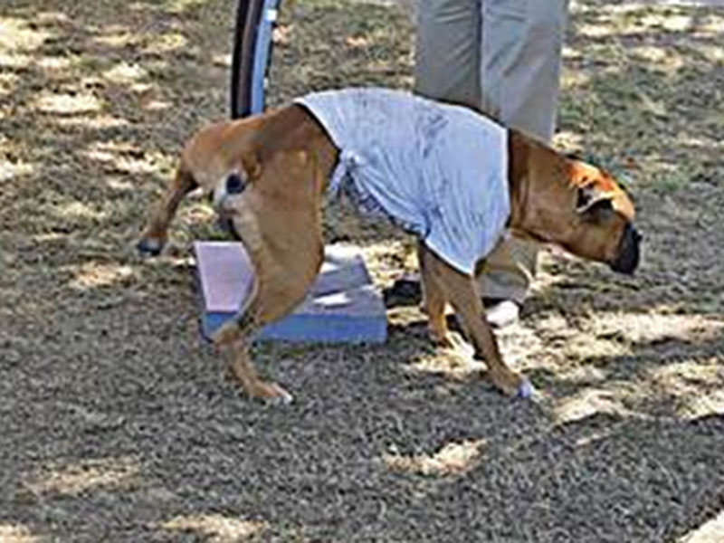 Un boxer llegó con toda la calma del mundo y tras husmear el lugar, levantó la pata mientras un alcalde de Jalisco daba su discurso