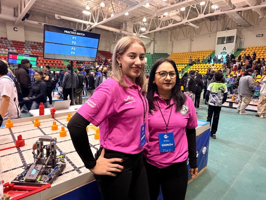 “No tenemos ninguna carrera que implique mucho esto de la tecnología, pero aquí andamos dándolo todo. Traemos dos VEX robóticos UV5, que son recolectores. Nos tardamos como dos semanas haciéndolos porque nos apuramos mucho. Gracias al profe Luis Daniel, que estuvo muy pendiente, es que andamos aquí”, aseguró la estudiante.