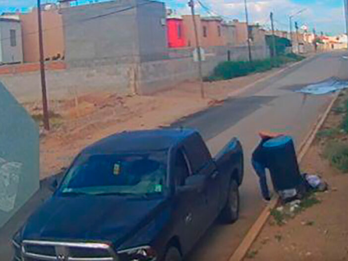Un hombre fue sorprendido en video mientras arrojaba un tambo completo de basura domiciliaria en el área de banqueta de una acera, en el sector Valle del Sol.