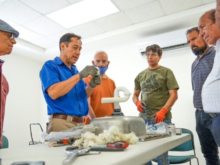 Explicó que “es un curso de plomería completamente gratuito. La JMAS pone a disposición tanto los materiales como las herramientas necesarias para que los participantes puedan aprovechar al máximo la capacitación”.