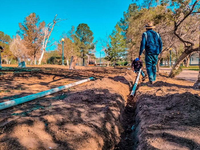El proyecto, agregó, contempla implementar aproximadamente 250 metros lineales de tubería con el objetivo de hacer más eficiente el uso del agua y garantizar el mantenimiento adecuado de las áreas verdes.