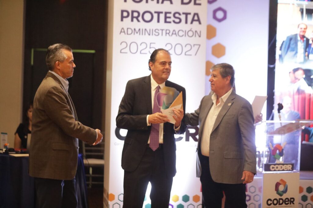 Durante la reunión el alcalde tomó protesta al nuevo presidente de CODER, Julián Pedroza Cervantes y al consejo directivo de la Administración 2025-2027, además agradeció la labor de Humberto Álvarez Quevedo, anterior presidente.