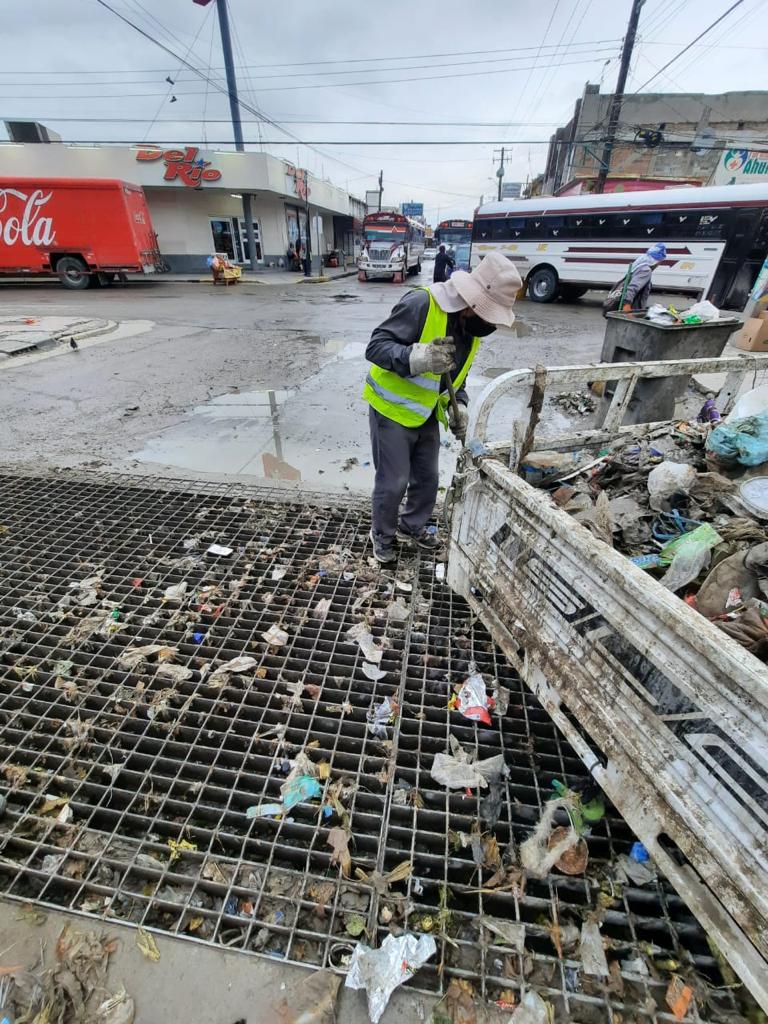 A través de un comunicado de prensa, se informó que se trabaja en retirar la basura del drenaje que se ubica en la calle Francisco Javier Mina, entre Miguel Ahumada y Paso del Norte.
