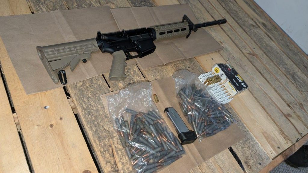 - Un arma de fuego larga, cargadores y cartuchos de diferentes calibres.