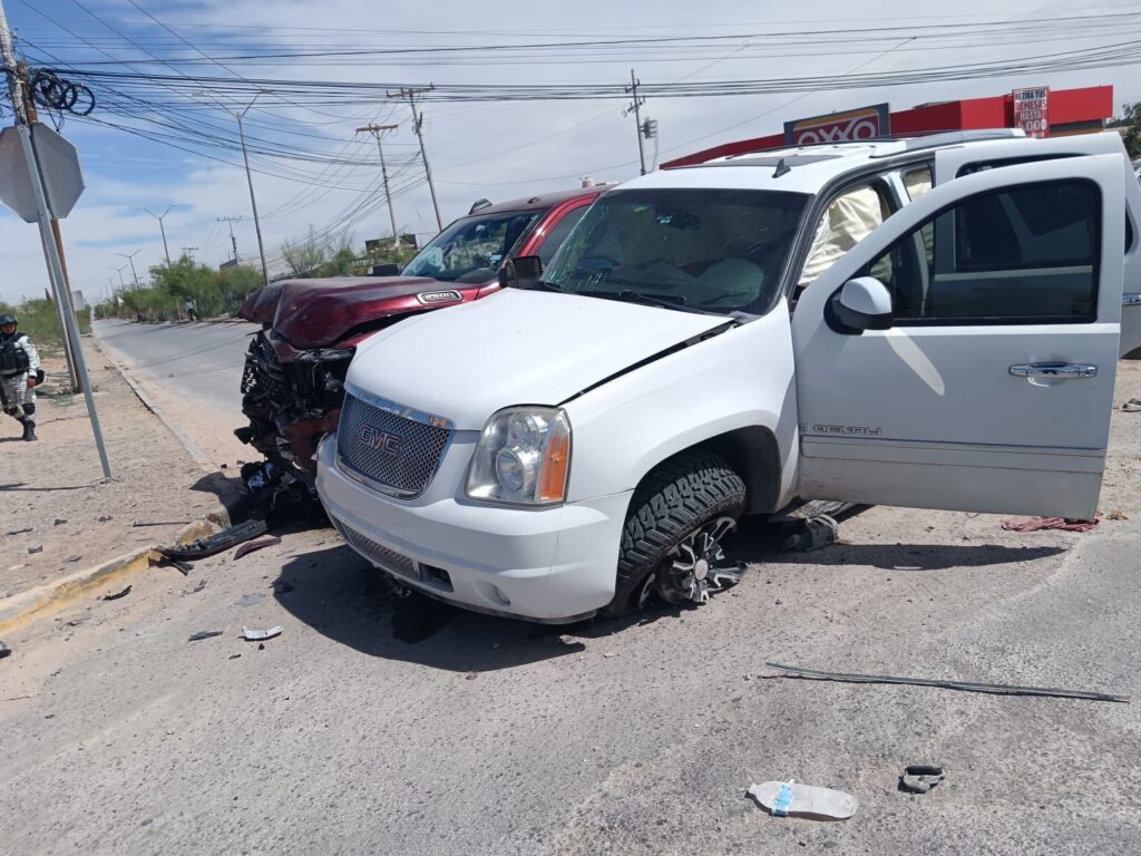 La huida culminó en el cruce de las calles Talamás Camandari y Monte Toledo del fraccionamiento Urbivilla del Campo, donde el vehículo robado impactó contra una camioneta de la marca GMC Yukon, lo que permitió su inmovilización.
