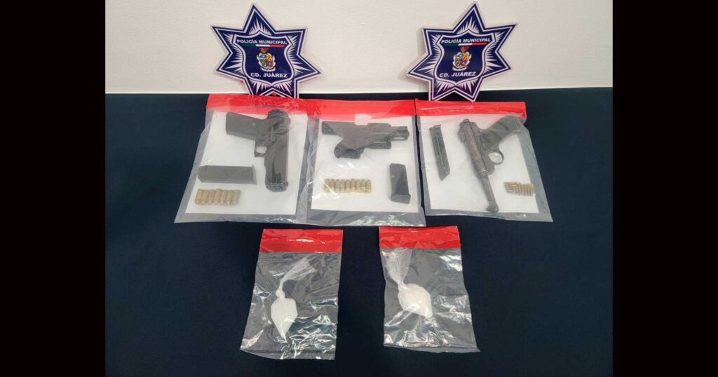 Posteriormente al inspeccionar a un adolescente de 17 años, se le localizó una pistola calibre .45 con un cargador abastecido con siete cartuchos útiles, mientras que, a Juan Manuel D. Z. de 20 años, le fue encontrada otra arma de fuego calibre .22, con su cargador abastecido con nueve cartuchos útiles.