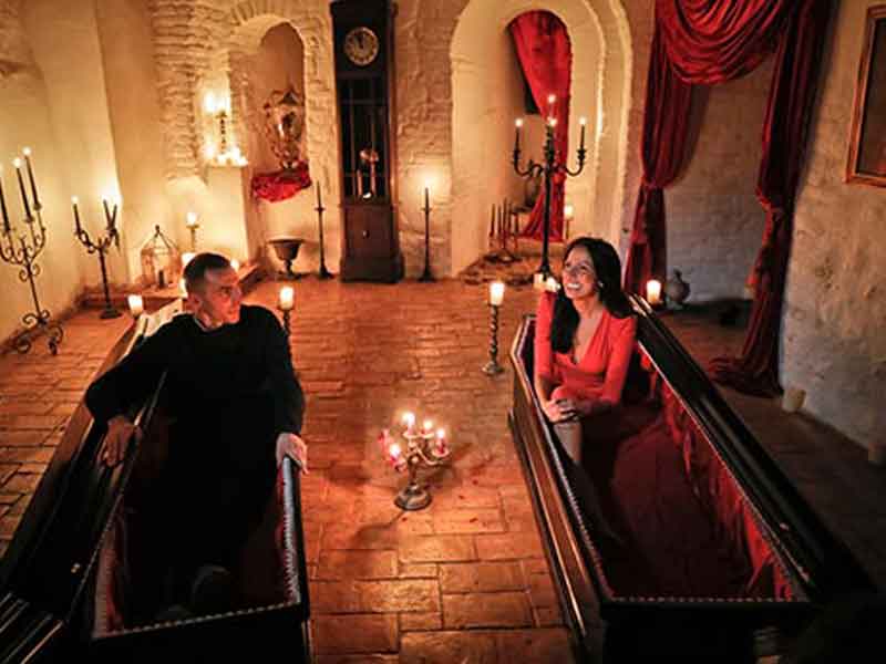 Tami Varma y su hermano Robin pasarán la noche dentro de ataúdes con terciopelo rojo en el castillo en Transilvania, es la primera vez que esto ocurre en 70 años