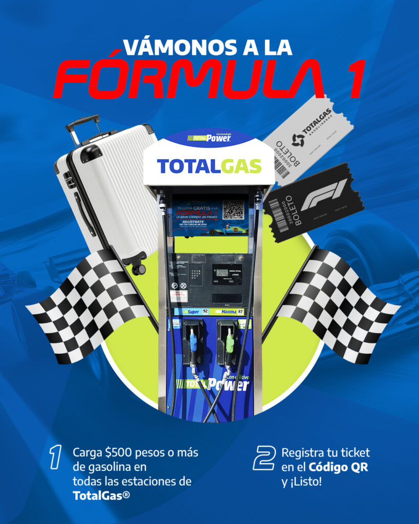 Desde principios del mes de abril TotalGas® lanzó una dinámica para los apasionados a las carreras de automóviles y público en general en la que invita a sus clientes a abastecerse de combustible con ellos ya que sus cargas los premian en poder ganar un viaje todo pagado al gran premio de México.