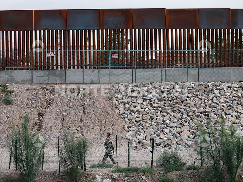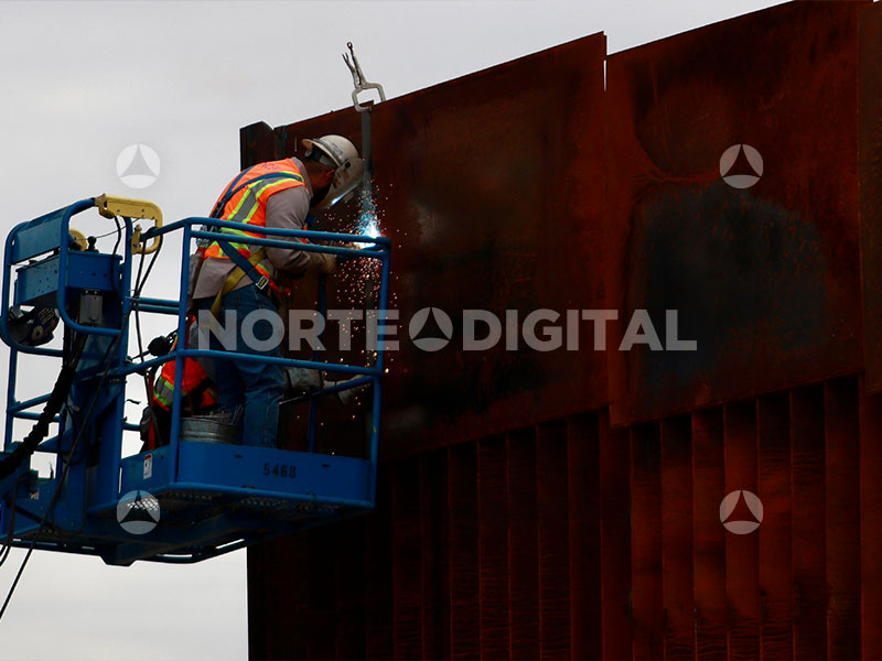 Detrás de él, hay decenas de trabajadores que refuerzan el muro fronterizo, el que fue mandado construir hace años por el entonces presidente Donald Trump y que hoy, en 2023 es fortalecido por la administración de Joe Biden.
