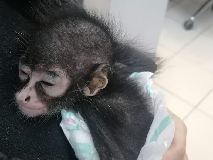Pero entre el armamento había algo más. En el interior del vehículo fue localizada una cría de mono, viva y en condiciones de riesgo. El animal fue rescatado y entregado a la Dirección de Atención y Bienestar Animal (DABA), donde quedó bajo resguardo para su protección y atención veterinaria.