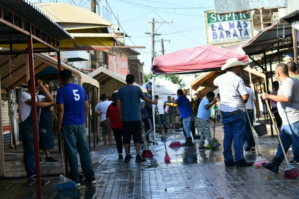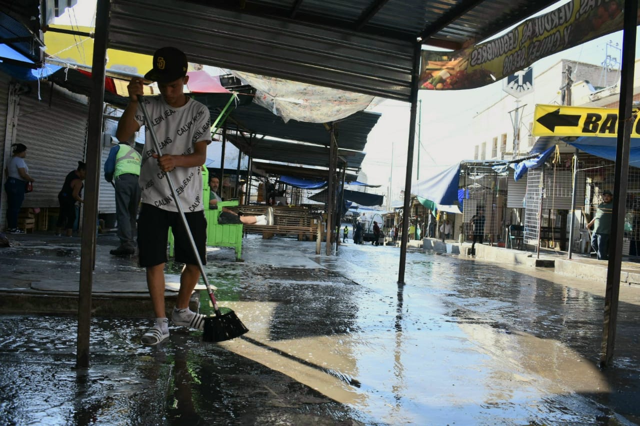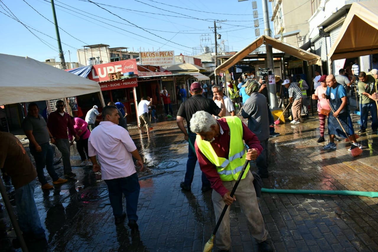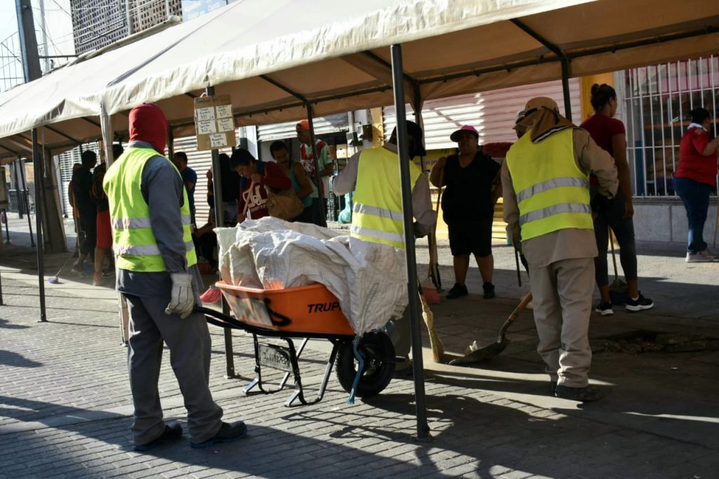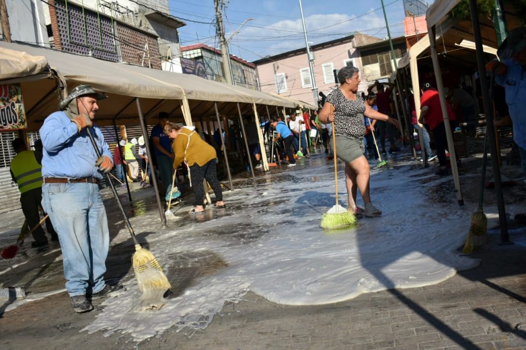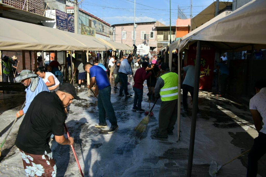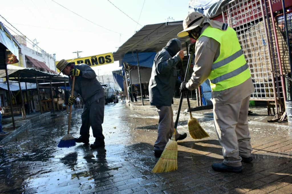 Los trabajos de limpieza se realizaron evitando entorpecer la actividad comercial del sector y continuaron hasta después de las 11 de la mañana, de manera organizada con los locatarios, añadió.